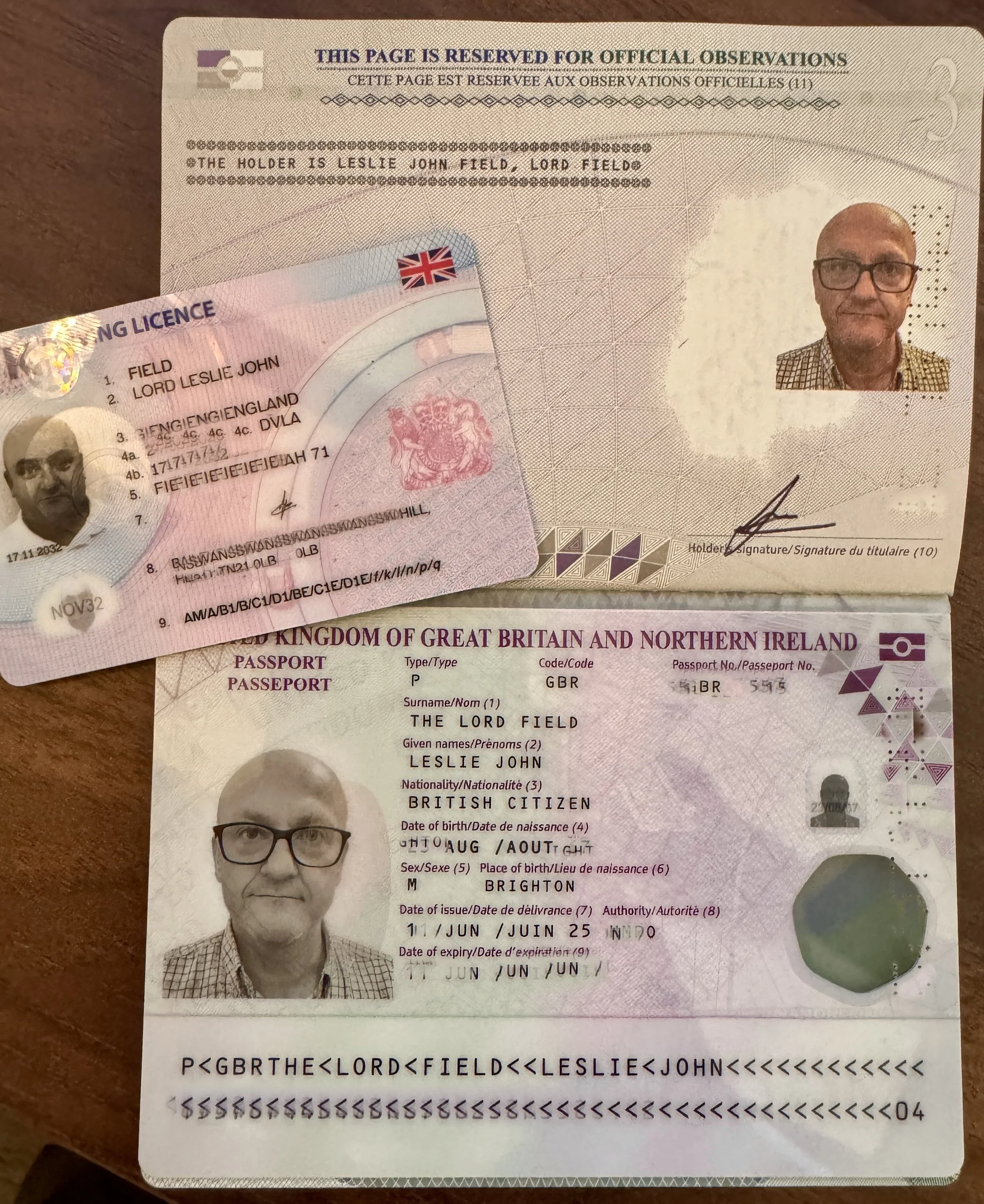 On Leslie Robert’s death, the title passed to me, Leslie John Field—making me the 22nd Baron of Fielden.